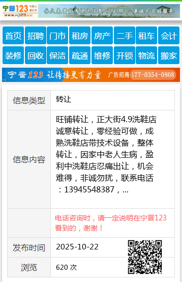 旺铺转让,正大街4.9洗鞋店诚意转让,零经验可做,成熟洗鞋店带技术设备,整体转让,因家中老人生病,盈利中洗鞋店忍痛出让,机会难得,非诚勿扰,联系电话:13945548387,