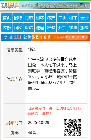 望奎人流量最多位置台球室出兑,本人忙不过来,马上到旺季,有稳定客源,价格10万,可小砍!诚心想干的联系15665027777电话微信同步 【电话咨询时,请一定说明在望奎信息网看到的,谢谢!】 |
