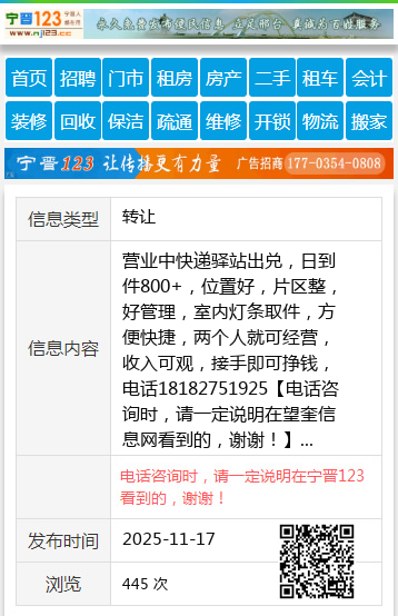 营业中快递驿站出兑,日到件800+,位置好,片区整,好管理,室内灯条取件,方便快捷,两个人就可经营,收入可观,接手即可挣钱,电话18182751925 【电话咨询时,请一定说明在望奎信息网看到的,谢谢!】 |