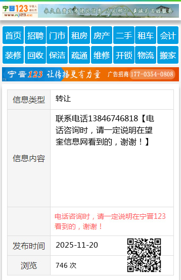 免责声明:本栏目信息由网友自行发布,望奎信息网不承担任何责任!提高警惕,谨防诈骗!做推广、做信息置顶!请加望奎信息网客服微信:wangku0455