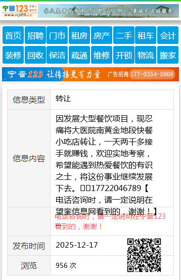 因发展大型餐饮项目,现忍痛将大医院南黄金地段快餐小吃店转让,一天两千多接手就赚钱,欢迎实地考察,希望能遇到热爱餐饮的有识之士,将这份事业继续发展下去。☎️17722046789 【电话咨询时,请一定说明在望奎信息网看到的,谢谢!】 |