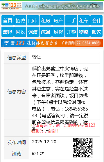 低价出兑营业中火锅店,现在正是旺季,接手即赚钱,包教技术,客源稳定,还有其它生意,实在是经营不过来,有意者面谈,饭口勿扰(下午4点半以后没时间接电话),电话:18945538543 【电话咨询时,请一定说明在望奎信息网看到的,谢谢!】 |