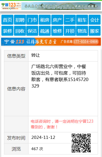 广场路北六街营业中,中餐饭店出兑,可包席,可招待散客,有意者联系15145720329