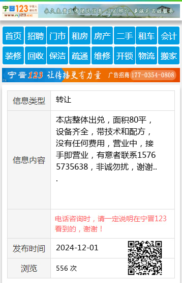 本店整体出兑,面积80平,设备齐全,带技术和配方,没有任何费用,营业中,接手即营业,有意者联系15765735638,非诚勿扰,谢谢