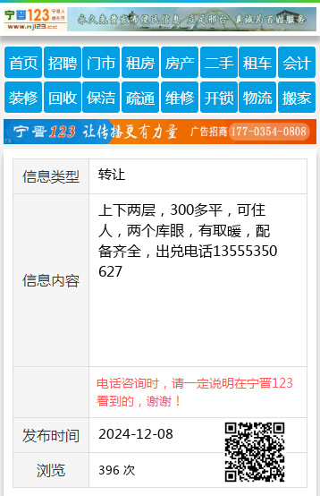 上下两层,300多平,可住人,两个库眼,有取暖,配备齐全,出兑电话13555350627
