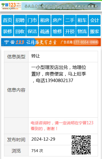 一小型理发店出兑,地理位置好,房费便宜,马上旺季,电话13940802137