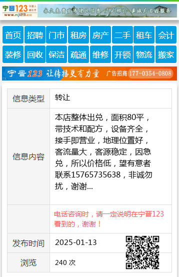 本店整体出兑,面积80平,带技术和配方,设备齐全,接手即营业,地理位置好,客流量大,客源稳定,因急兑,所以价格低,望有意者联系15765735638,非诚勿扰,谢谢 【电话咨询时,请一定说明在望奎信息网看到的,谢谢!】 |