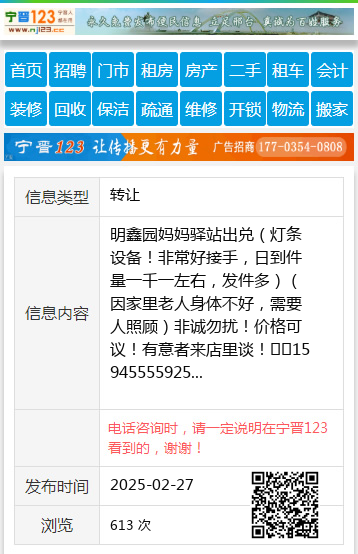 明鑫园妈妈驿站出兑(灯条设备!非常好接手,日到件量一千一左右,发件多)(因家里老人身体不好,需要人照顾)非诚勿扰!价格可议!有意者来店里谈!☎️15945555925 【电话咨询时,请一定说明在望奎信息网看到的,谢谢!】 |