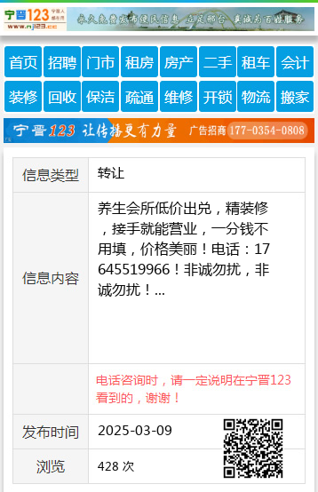 养生会所低价出兑,精装修,接手就能营业,一分钱不用填,价格美丽!电话:17645519966!非诚勿扰,非诚勿扰!