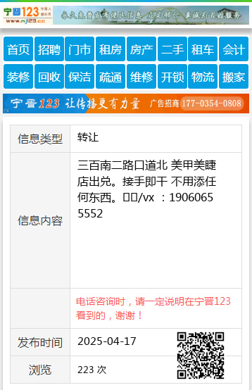 三百南二路口道北 美甲美睫店出兑。接手即干 不用添任何东西。☎️/vx :19060655552