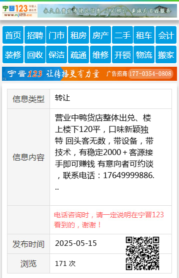 营业中鸭货店整体出兑、楼上楼下120平,口味新颖独特 回头客无数,带设备,带技术,有稳定2000+客源接手即可赚钱 有意向者可约谈,联系电话:17649999886 【电话咨询时,请一定说明在望奎信息网看到的,谢谢!】 |