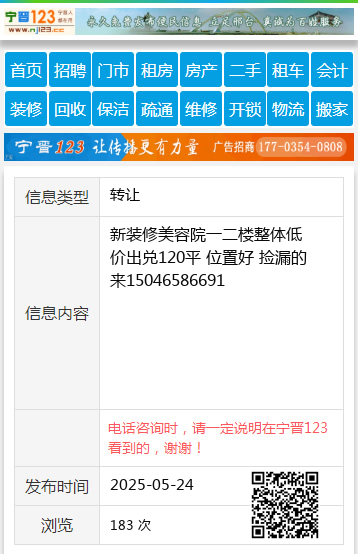 新装修美容院一二楼整体低价出兑120平 位置好 捡漏的来15046586691
