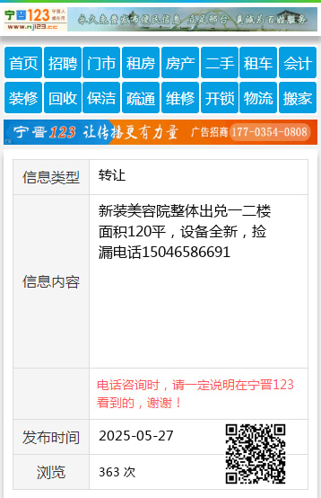 新装美容院整体出兑一二楼面积120平,设备全新,捡漏电话15046586691