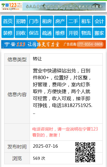 营业中快递驿站出兑,日到件800+,位置好,片区整,好管理,费用少,室内灯条取件,方便快捷,两个人就可经营,收入可观,接手即可挣钱,电话18182751925
