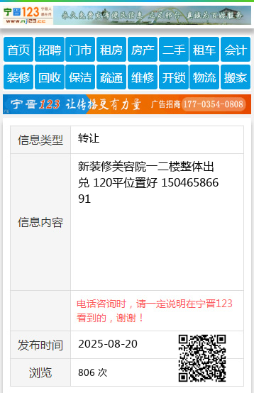 新装修美容院一二楼整体出兑 120平位置好 15046586691