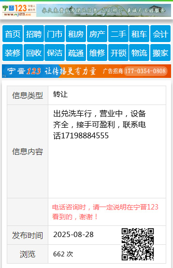 出兑洗车行,营业中,设备齐全,接手可盈利,联系电话17198884555