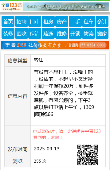 有没有不想打工,没啥干的,没活的,不起早不贪黑净利润一年保挣20万,到件多发件多,设备齐全,接手就赚钱,有感兴趣的,下午3点以后打电话上午忙,13091539566 [图片]