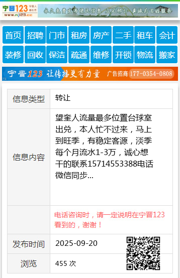 望奎人流量最多位置台球室出兑,本人忙不过来,马上到旺季,有稳定客源,淡季每个月流水1-3万,诚心想干的联系15714553388电话微信同步 【电话咨询时,请一定说明在望奎信息网看到的,谢谢!】 |