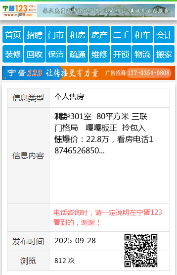 惊爆价:22.8万,看房电话18746526850 【电话咨询时,请一定说明在望奎信息网看到的,谢谢!】 |
