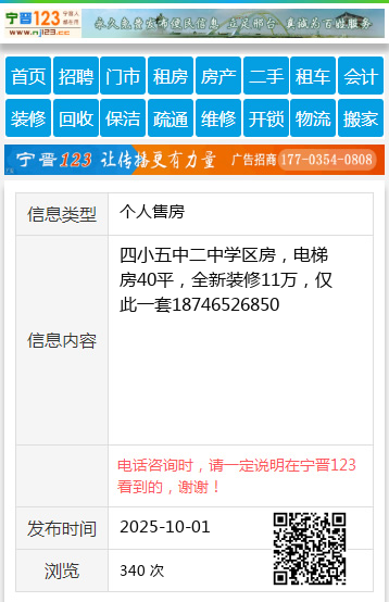 四小五中二中学区房,电梯房40平,全新装修11万,仅此一套18746526850