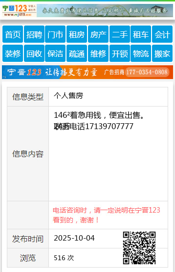 146²着急用钱,便宜出售。联系电话17139707777 24万