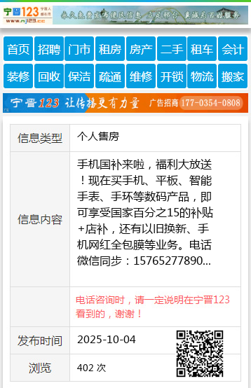 手机国补来啦,福利大放送!现在买手机、平板、智能手表、手环等数码产品,即可享受国家百分之15的补贴+店补,还有以旧换新、手机网红全包膜等业务。电话微信同步:15765277890 【电话咨询时,请一定说明在望奎信息网看到的,谢谢!】 |