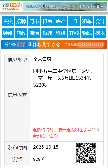 四小五中二中学区房,5楼,一室一厅,5.6万☎️15344552208