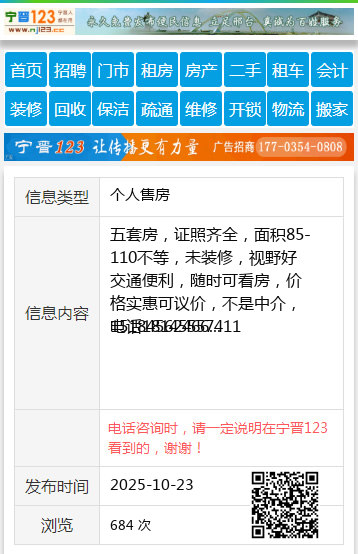 五套房,证照齐全,面积85-110不等,未装修,视野好交通便利,随时可看房,价格实惠可议价,不是中介,电话18145557411
