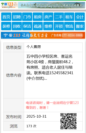 五中四小学校区房、客运名苑小区4楼,房屋面积48.2,有房照、适合老人居住与陪读。联系电话15245582341(中介勿扰) 【电话咨询时,请一定说明在望奎信息网看到的,谢谢!】 |
