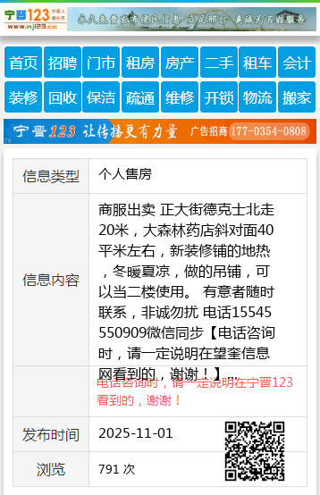商服出卖 正大街德克士北走20米,大森林药店斜对面40平米左右,新装修铺的地热,冬暖夏凉,做的吊铺,可以当二楼使用。 有意者随时联系,非诚勿扰 电话15545550909微信同步 【电话咨询时,请一定说明在望奎信息网看到的,谢谢!】 |