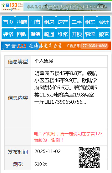 明鑫园五楼45平8.8万。领航小区五楼46平9.9万。欧陆学府5楼特价6.6万。碧海澎湖5楼11.5万电梯高层19.8两室一厅☎️17390650756
