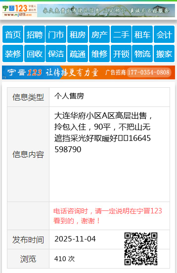 大连华府小区A区高层出售,拎包入住,90平,不把山无遮挡采光好取暖好☎️16645598790