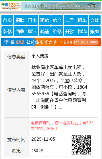 就业局小区车库出卖出租,位置好,出门就是正大街,44平,20万,全屋已装修,能放两台车,可小议,18645565959