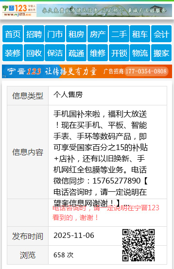 手机国补来啦,福利大放送!现在买手机、平板、智能手表、手环等数码产品,即可享受国家百分之15的补贴+店补,还有以旧换新、手机网红全包膜等业务。电话微信同步:15765277890 【电话咨询时,请一定说明在望奎信息网看到的,谢谢!】 |