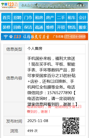 手机国补来啦,福利大放送!现在买手机、平板、智能手表、手环等数码产品,即可享受国家百分之15的补贴+店补,还有以旧换新、手机网红全包膜等业务。电话微信同步:15765277890 【电话咨询时,请一定说明在望奎信息网看到的,谢谢!】 |