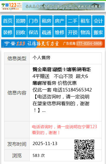 随时可看房 价格优惠 仅此一套 电话15184565342 【电话咨询时,请一定说明在望奎信息网看到的,谢谢!】 |