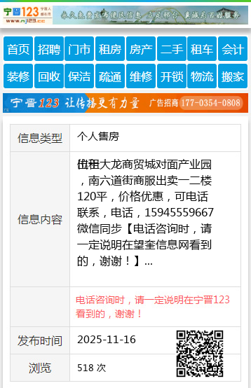 位于大龙商贸城对面产业园,南六道街商服出卖一二楼120平,价格优惠,可电话联系,电话,15945559667 微信同步 【电话咨询时,请一定说明在望奎信息网看到的,谢谢!】 |
