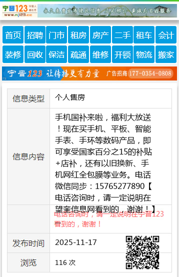 手机国补来啦,福利大放送!现在买手机、平板、智能手表、手环等数码产品,即可享受国家百分之15的补贴+店补,还有以旧换新、手机网红全包膜等业务。电话微信同步:15765277890 【电话咨询时,请一定说明在望奎信息网看到的,谢谢!】 |