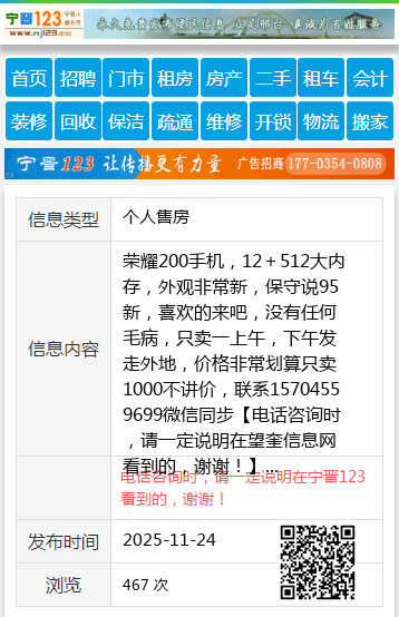 荣耀200手机,12+512大内存,外观非常新,保守说95新,喜欢的来吧,没有任何毛病,只卖一上午,下午发走外地,价格非常划算只卖1000不讲价,联系15704559699微信同步 【电话咨询时,请一定说明在望奎信息网看到的,谢谢!】 |