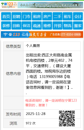 出租出卖:西正大街路南金属机电楼四楼,2单元402,74平,交通便利,(建设大厦西面的楼。地税局东边的楼)电话 13199005988 【电话咨询时,请一定说明在望奎信息网看到的,谢谢!】 |