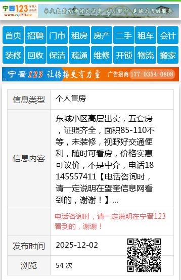 东城小区高层出卖,五套房,证照齐全,面积85-110不等,未装修,视野好交通便利,随时可看房,价格实惠可议价,不是中介,电话18145557411 【电话咨询时,请一定说明在望奎信息网看到的,谢谢!】 |