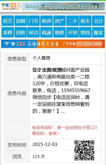 位于大龙商贸城对面产业园,南六道街商服出卖一二楼120平,价格优惠,可电话联系,电话,15945559667 微信同步 【电话咨询时,请一定说明在望奎信息网看到的,谢谢!】 |