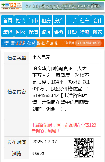 铂金华府[啤酒]真正一人之下万人之上凤凰层,24楼不是顶楼,104平,额外赠送10平方,毛坯房价格便宜,15184565342 【电话咨询时,请一定说明在望奎信息网看到的,谢谢!】 |