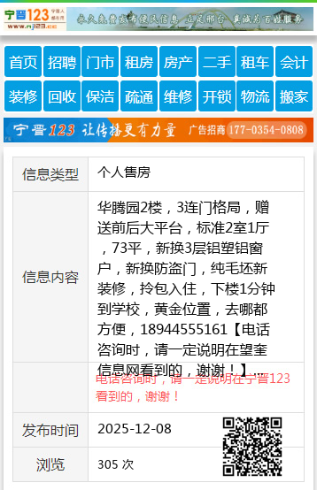 华腾园2楼,3连门格局,赠送前后大平台,标准2室1厅,73平,新换3层铝塑铝窗户,新换防盗门,纯毛坯新装修,拎包入住,下楼1分钟到学校,黄金位置,去哪都方便,18944555161 【电话咨询时,请一定说明在望奎信息网看到的,谢谢!】 |