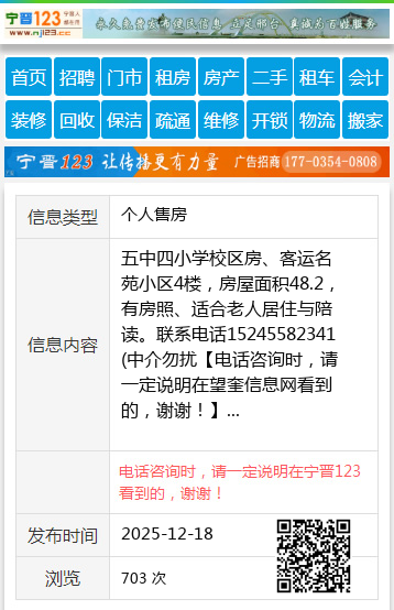 五中四小学校区房、客运名苑小区4楼,房屋面积48.2,有房照、适合老人居住与陪读。联系电话15245582341(中介勿扰 【电话咨询时,请一定说明在望奎信息网看到的,谢谢!】 |