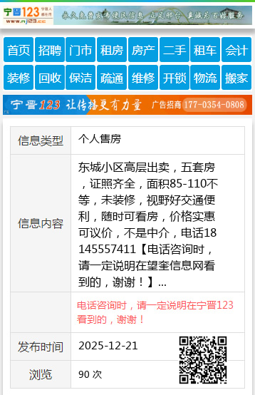 东城小区高层出卖,五套房,证照齐全,面积85-110不等,未装修,视野好交通便利,随时可看房,价格实惠可议价,不是中介,电话18145557411 【电话咨询时,请一定说明在望奎信息网看到的,谢谢!】 |