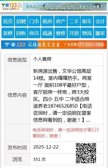 新房源出售,文华公馆高层14楼。室内嘎嘎热乎。两室一厅 面积108平最好户型,客厅厨房一样宽,跨3大校区。四小 五中 二中适合陪读养老18746526850 【电话咨询时,请一定说明在望奎信息网看到的,谢谢!】 |