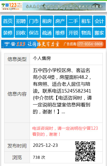 五中四小学校区房、客运名苑小区4楼,房屋面积48.2,有房照、适合老人居住与陪读。联系电话15245582341(中介勿扰 【电话咨询时,请一定说明在望奎信息网看到的,谢谢!】 |