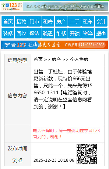 出售二手娃娃,由于体验馆更新新款,现特价666元出售,只此一个,先来先得15665011314