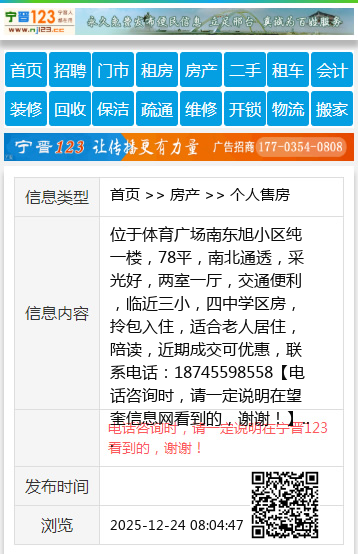 位于体育广场南东旭小区纯一楼,78平,南北通透,采光好,两室一厅,交通便利,临近三小,四中学区房,拎包入住,适合老人居住,陪读,近期成交可优惠,联系电话:18745598558